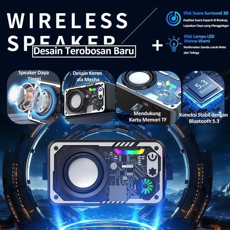 Speaker Bluetooth Cyberpunk Transparan LED RGB Speaker Super Bass KerenDual Mini PortableSound Jernih BA55YCocok untuk Gaming