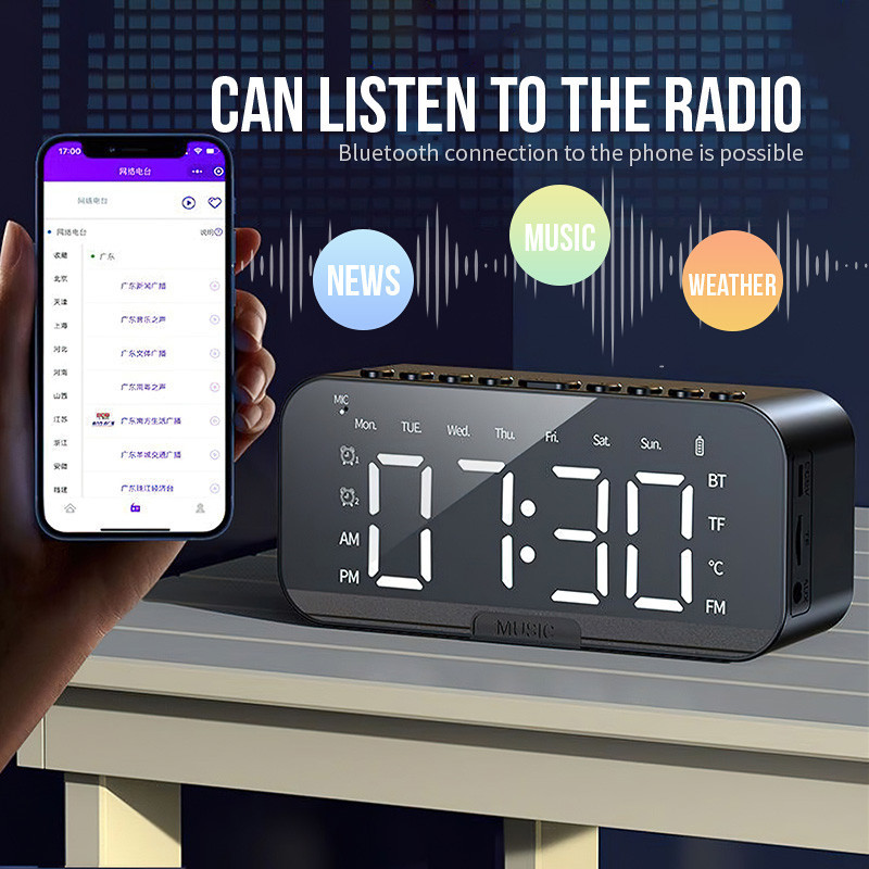 Multifunction Bluetooth Speaker Portable Lampu Speaker Bluetooth Bass Jam Alarm Clock LED Display Spiker Bluetooth Musik Box Speakers With FM Radio Mirror Wireless Music Box Bass Stereo