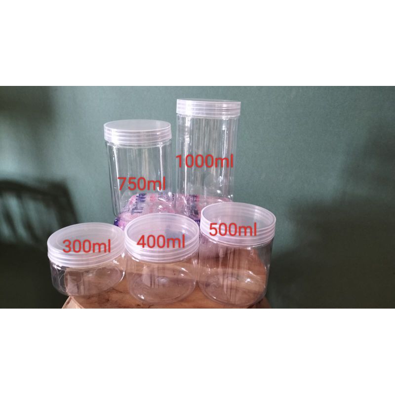 Toples Plastik Bulat Bening / Pet Jar Kue Kering 300 ml s/d 1000 ml per 1 pc