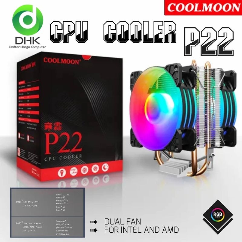 CPU FAN COOLER COOLMOON RGB P22 FOR INTEL DAN AMD FAN PROCESSOR
