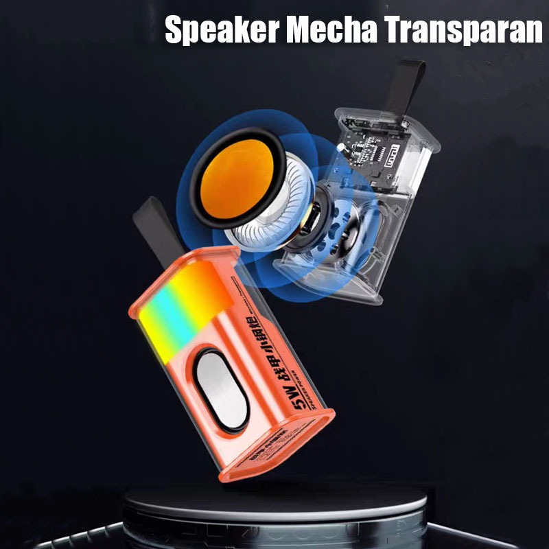 Speaker Bluetooth Transparent Mecha RBG TF A36 5W Portable Wireless Speaker Super Bass mini
