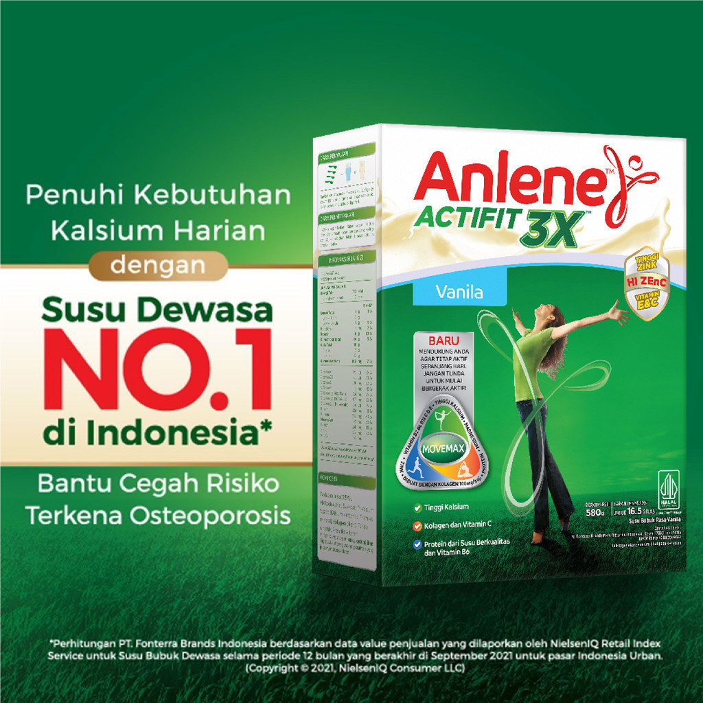 Anlene Actifit 3X Susu Bubuk D3W4SA Vanila 2 x 570g - Nutrisi Tinggi Kalsium Untuk Tulang, Sendi, dan Otot