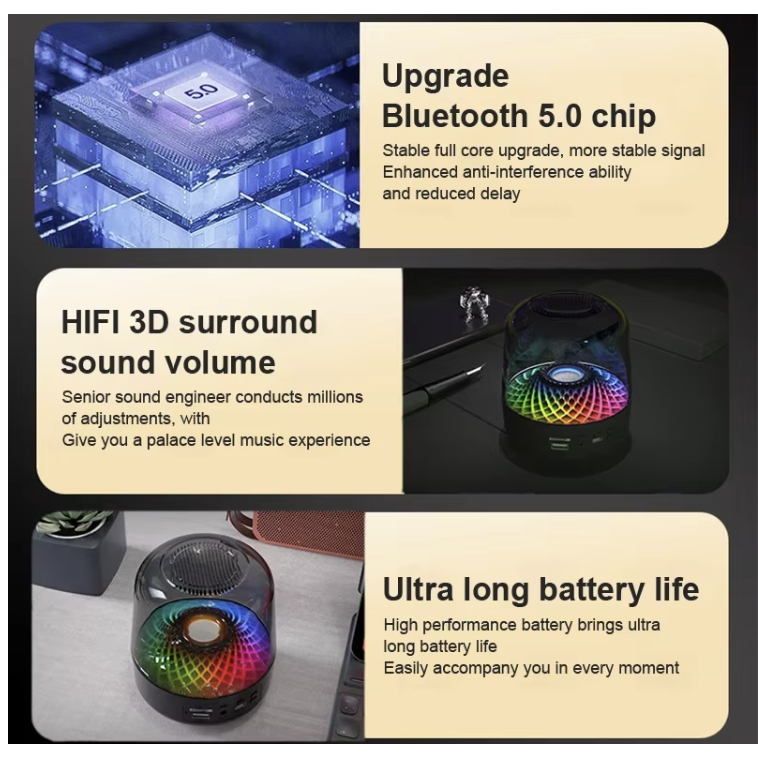 SMARTCOM Speaker Bluetooth RGB LED Stereo Super Bass Speaker Portable