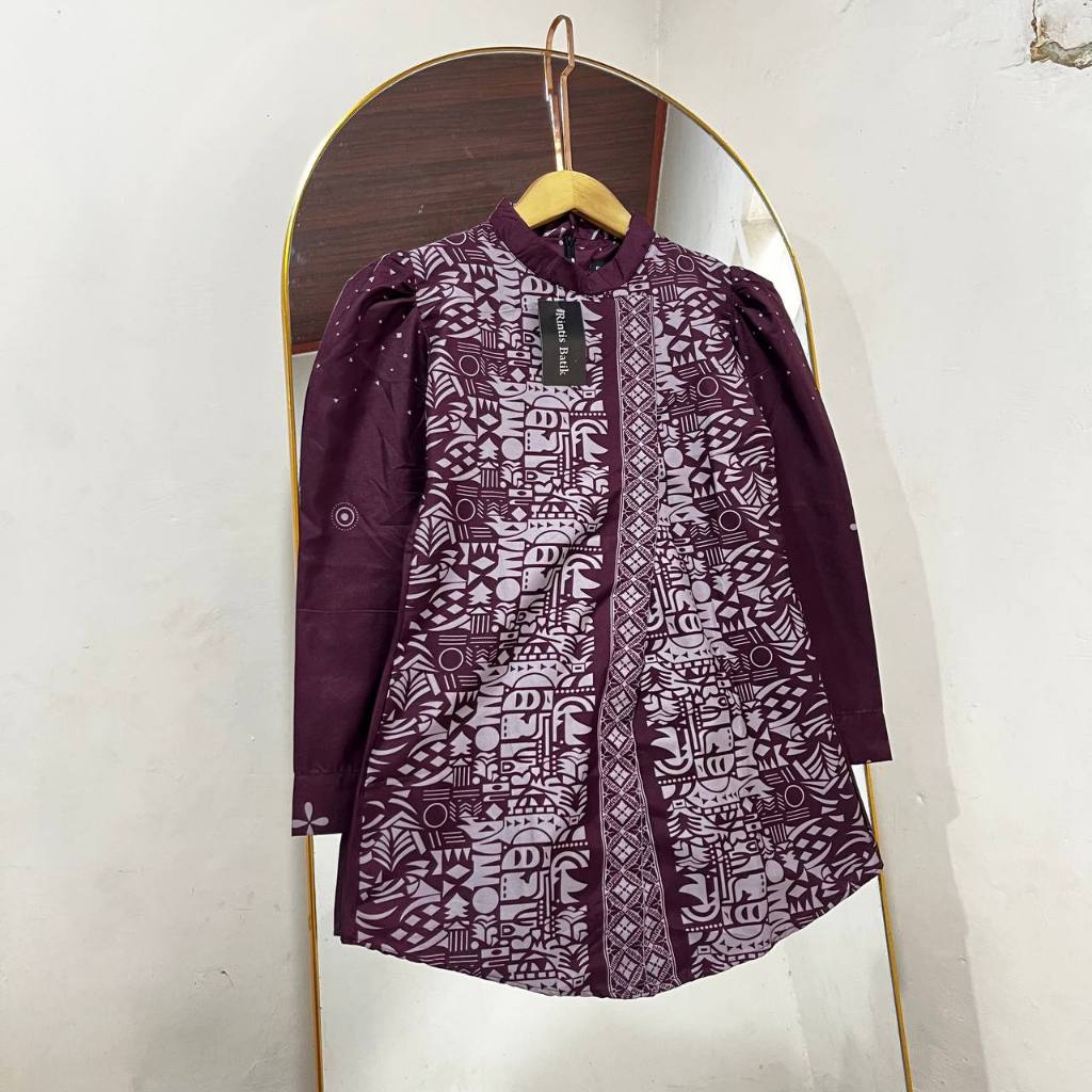 Batik Atasan Wanita Modern Baju Batik Lengan Panjang Puffy Janggan