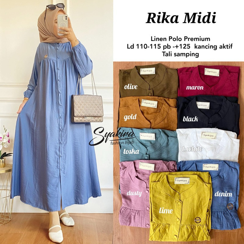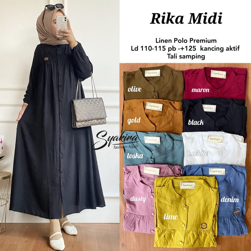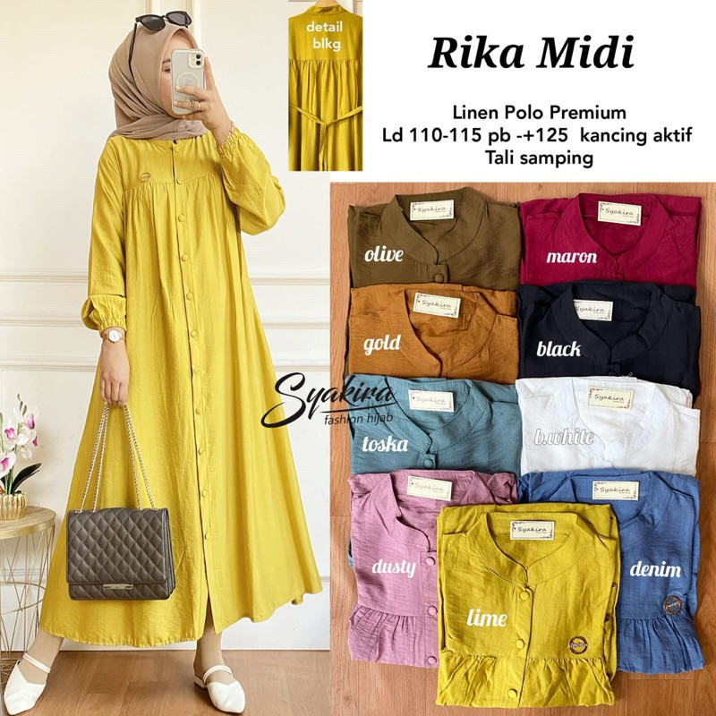 𝐏𝐆𝐌𝐓 • Rika LD 110cm Ld 130cm Midi Dress Gamis Polos Wanita Bahan Polo Linen Busui Kancing Aktif
