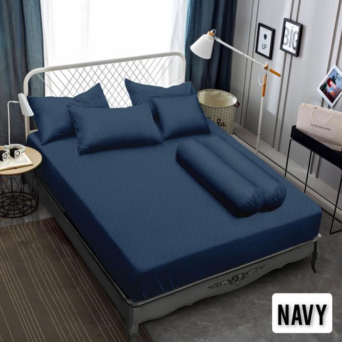 [PROMO] VALLERY QUINCY SPREI 180X200 TINGGI 30 CM POLOS EMBOSSED JACQUARD NAVY 160X200 NO 2