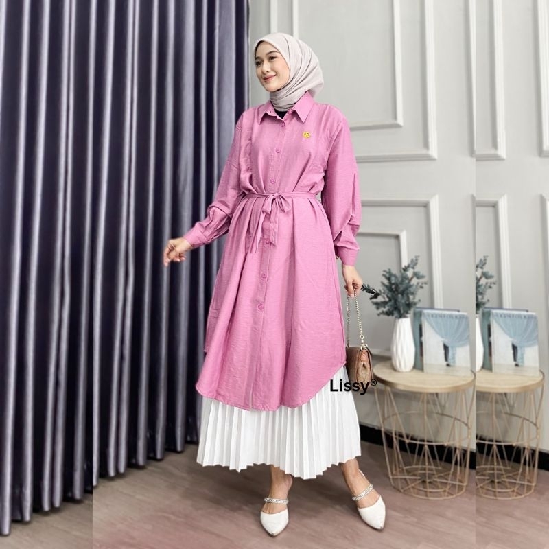 LISSY long tunik kemeja tunik wanita atasan wanita kekinia polo linen free tali pingganglt