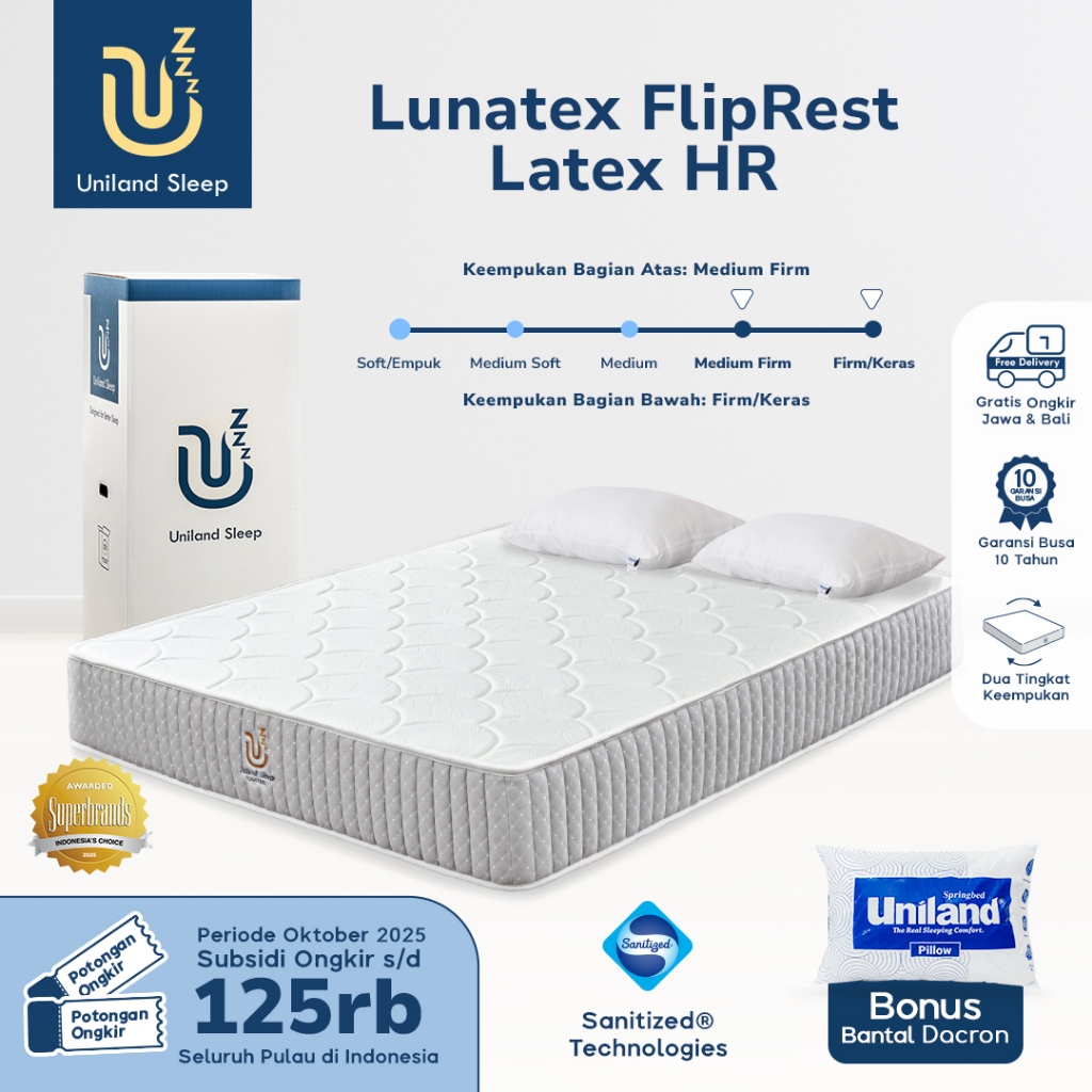 Kasur Busa Uniland Sleep Lunatex FlipRest 25cm Latex HR / Dual Feel
