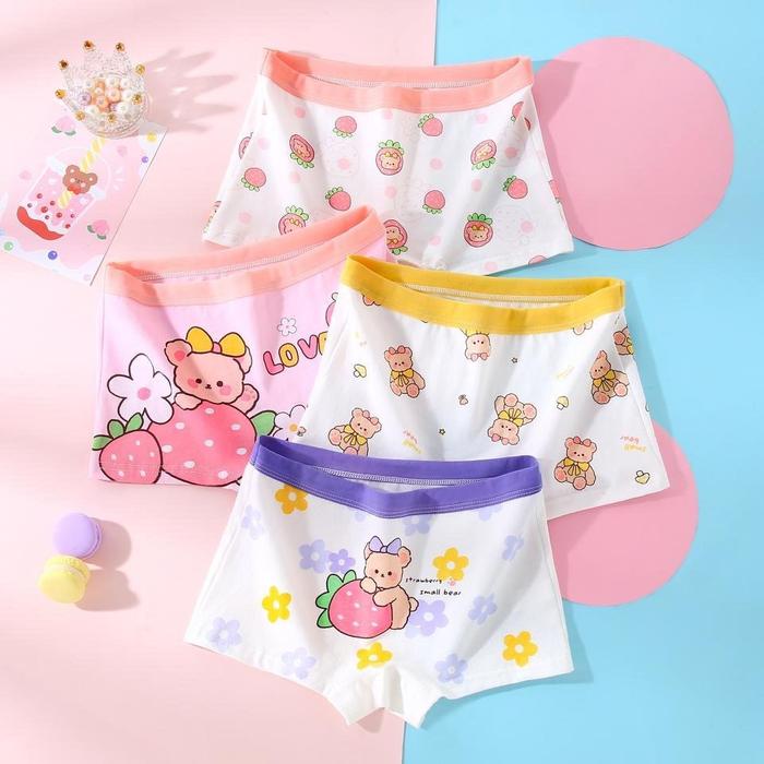 [PROMO] CELANA DALAM ANAK PEREMPUAN SEGI EMPAT 1 PAKET ISI 4PCS BAHAN KATUN MOTIFSTRAWBERRY BEAR M