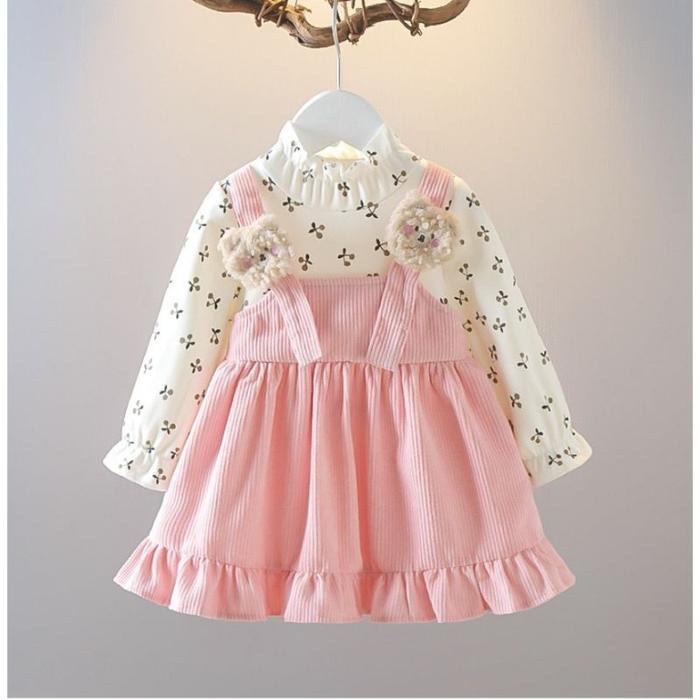 [PROMO] DRESS BEAR COURDORAY EBV BAJU DRESS ANAK PEREMPUAN IMPORT MOTIF FASHION MOTIFPINK COURDORAY XXL