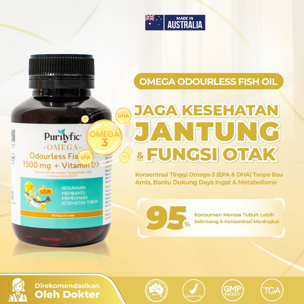(Official) Purityfic Omega High Strenght Odourless Fish Oil Vitamin Australia 60s - Solusi Untuk Turunkan Kadar Kolestro