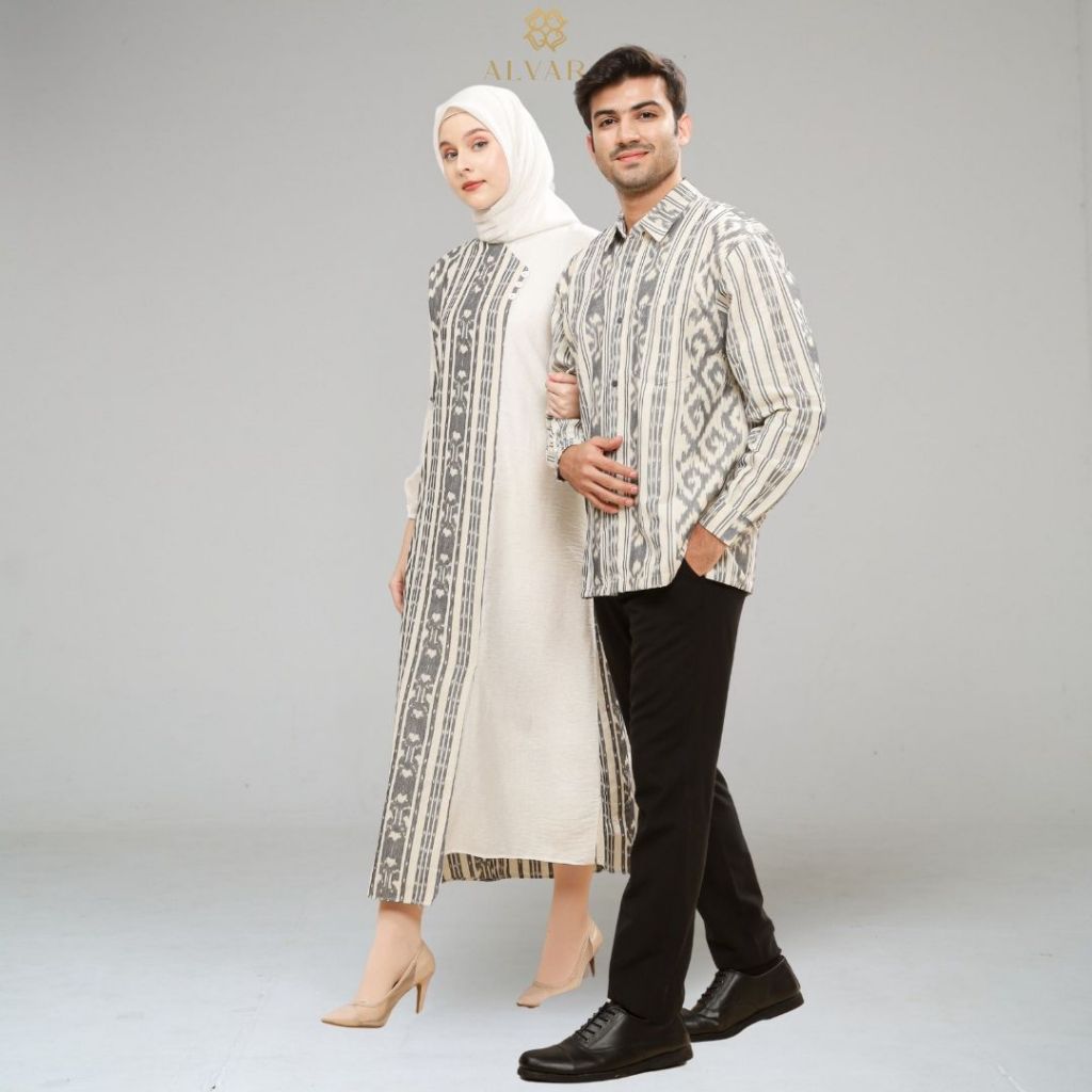 Batik Couple Kemeja Dress Kondangan Motif Terbaru ALVARA Jenar Big Size Jumbo Gamis Wanita Putih