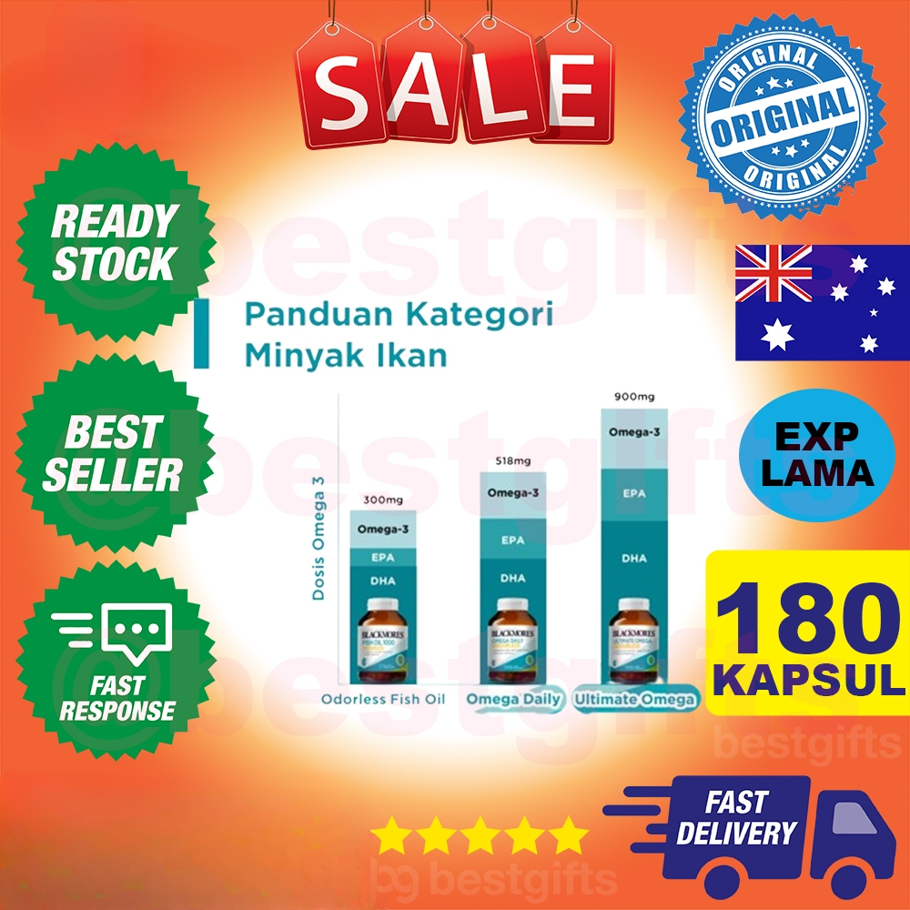 BLACKMORES ODOURLESS FISH OIL OMEGA 3 6 9 MINYAK IKAN SALMON KALBE - 180 KAPSUL