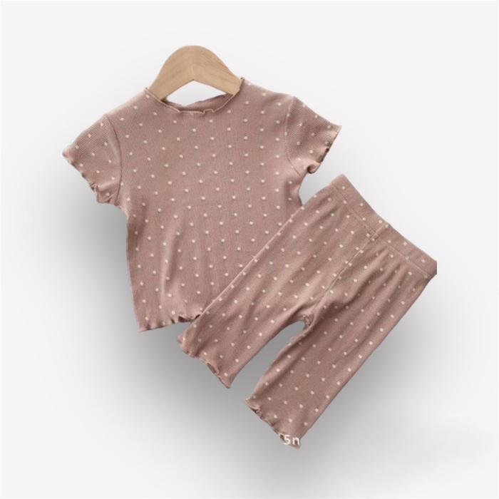 [PROMO] ONE SET PIYAMA ANAK CEWEK 6 BULAN7 TAHUN BUNDA LENGANPOLKADOT COKLAT 100