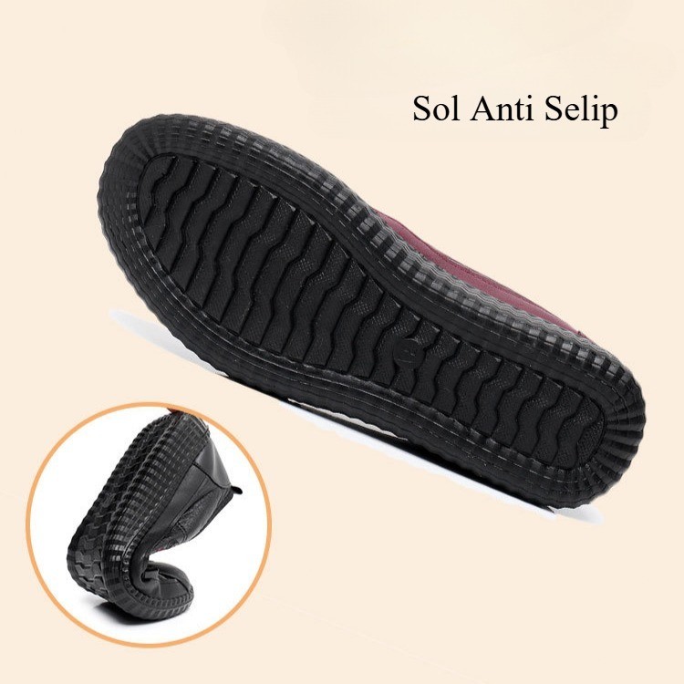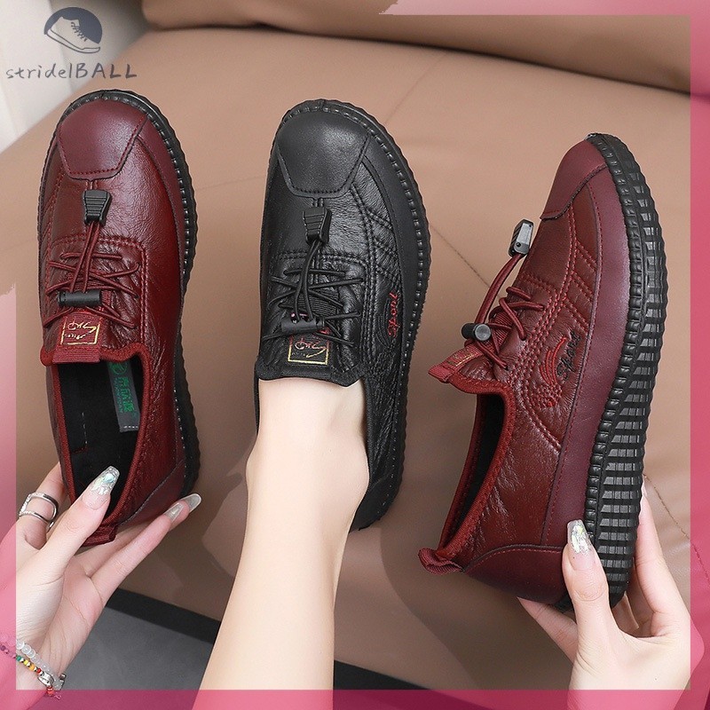 [ Stock]Sepatu Wanita Kerja Kantor Anti Slip Warna Hitam Merah - Flat Shoes Nyaman Untuk Ibu Slip On Kulit Sintetis Sol Lembut HF06