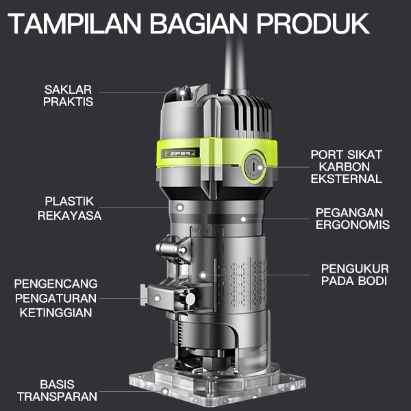 ZPER Mesin Profil Kayu alatpotong Router Trimmer Fullset Murah Wood Trimmer alat tukang kayu lengkap