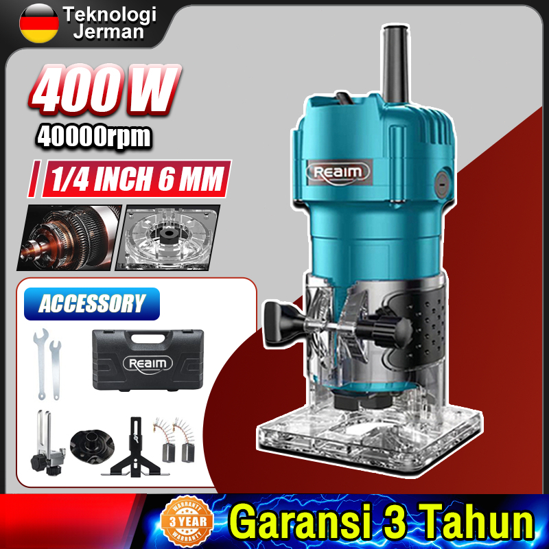 Reaim Wood Trimmer Kayu 400W Mesin Pemangkas Kayu Mesin Router Profil List Kayu Trimer Ruter