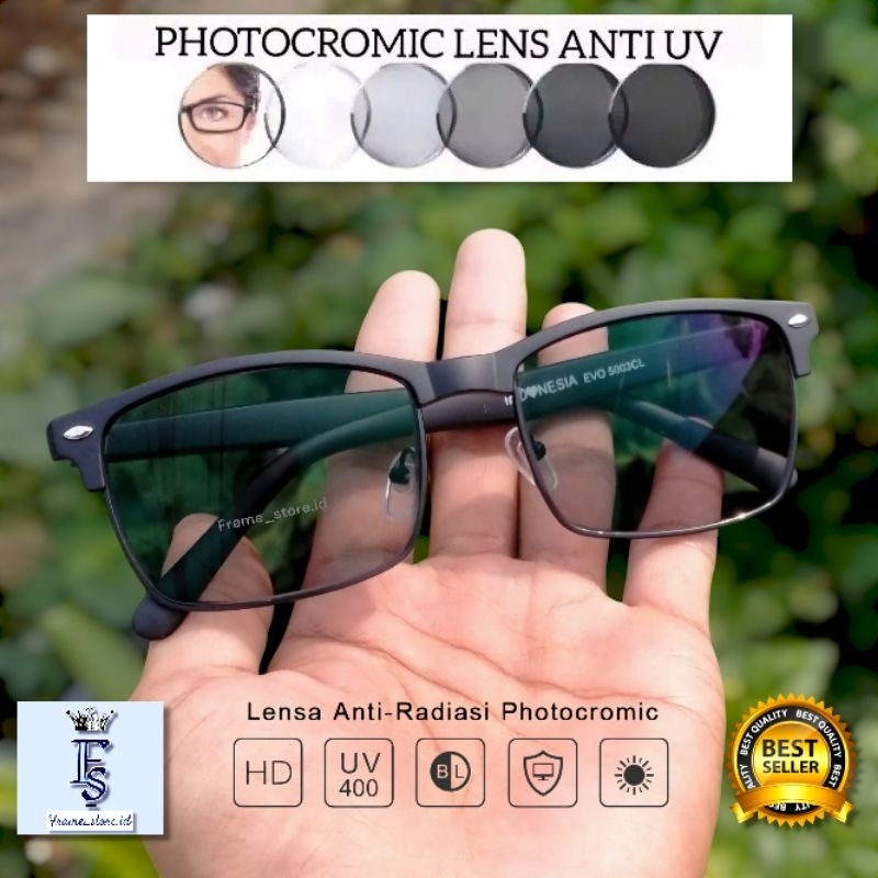 Kacamata Photocromic Lensa Anti Radiasi Blueray Minus Plus Frame EVO Unisex