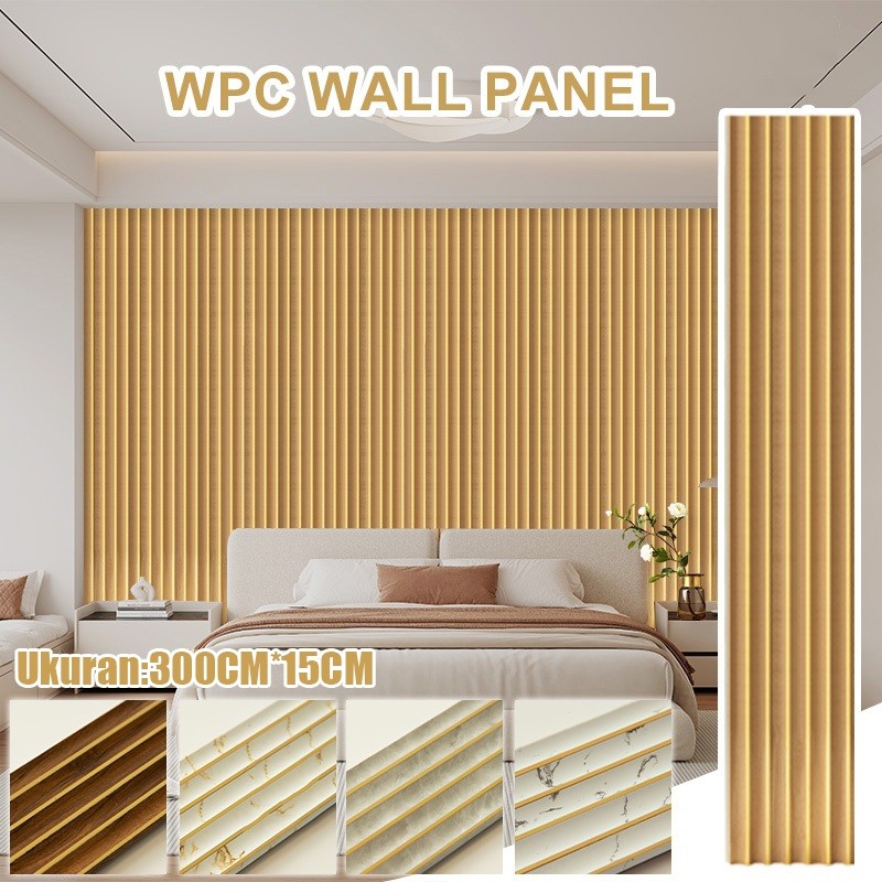 [3M x 15CM] Wood Panel WPC Wall Panel Dinding PVC Premium Kisi Motif Kayu Marmer Dekorasi