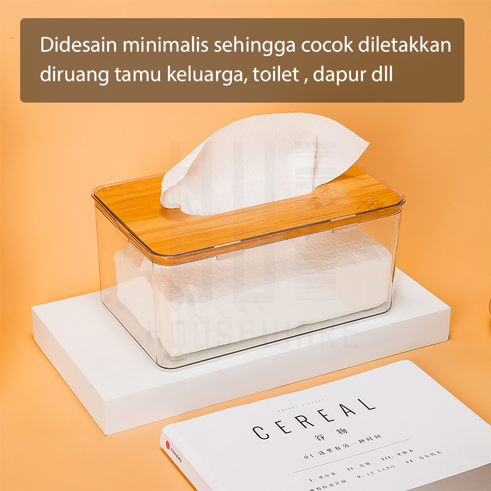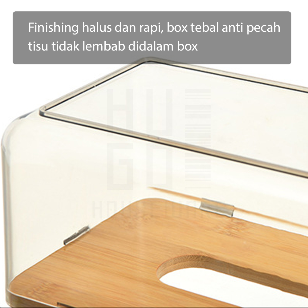 Hugo Houseware Kotak Tisu Tempat Penyimpanan Tisu Transparan Tutup Kayu Wadah Tissue Minimalis