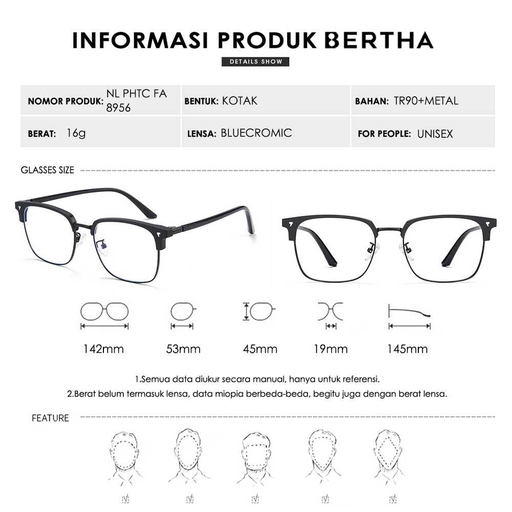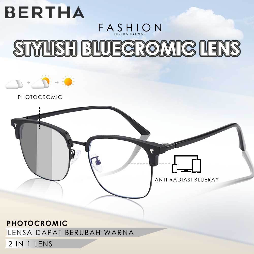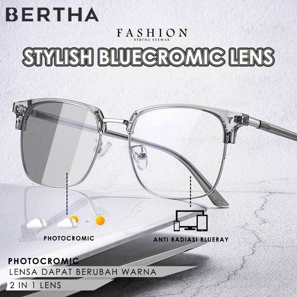 Bertha Kacamata Antiradiasi Blueray Photocromic Style Kotak Bahan TR90+Metal Simple Fashion Trendy Simple Pria Dan Wani