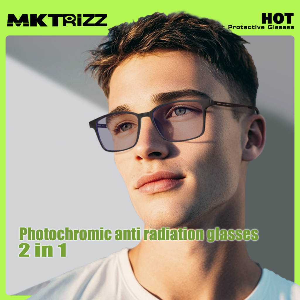 MKTRIZZ Kacamata photocromic Anti radiasi Minus Cylinder Frame Persegi panjang Hitam Pria dan Wanita
