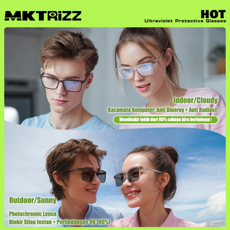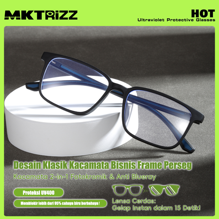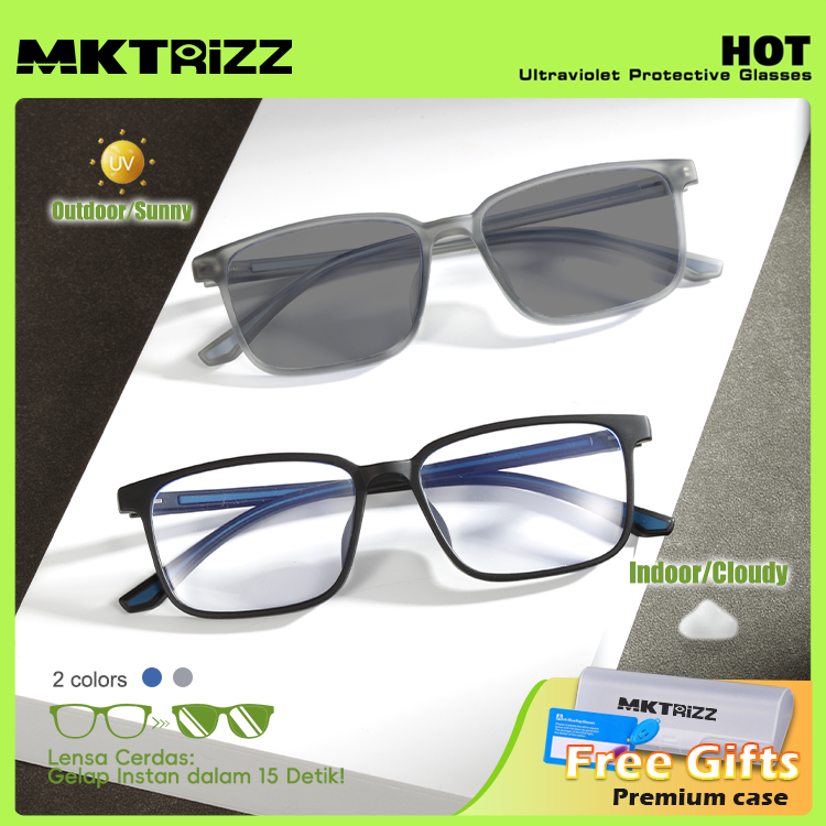 MKTRIZZ Kacamata Photocromic Anti Radiasi & Blueray Rectangle Frame Pria/Wanita Hitam Abu-abu 11659