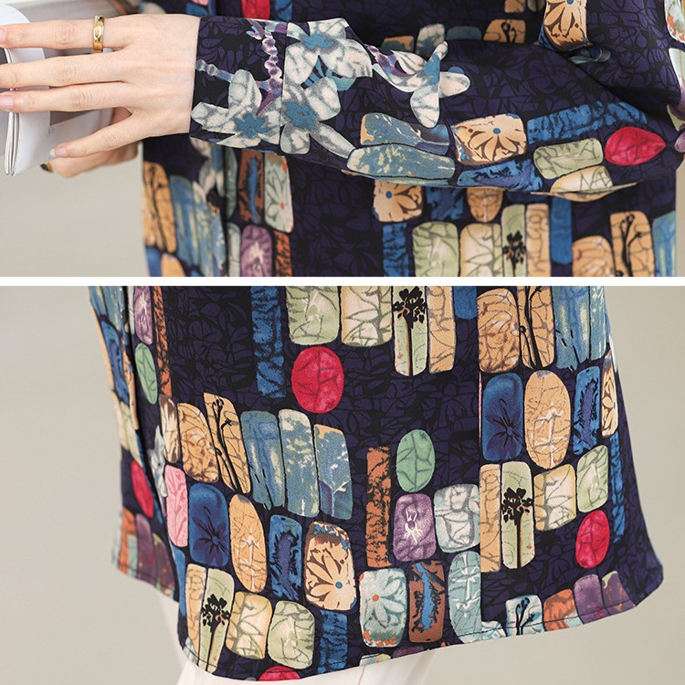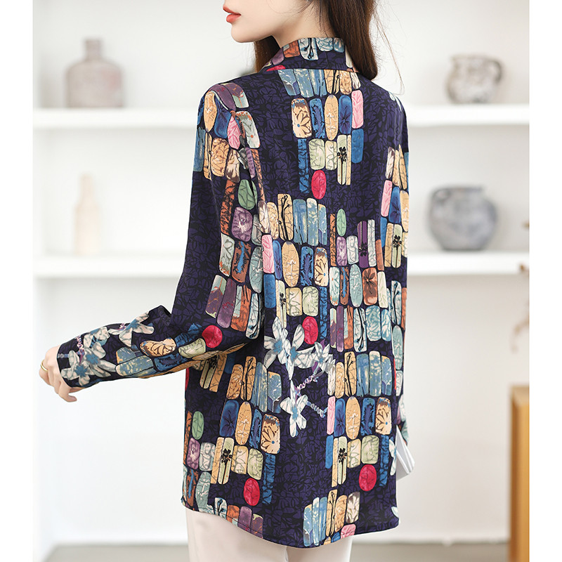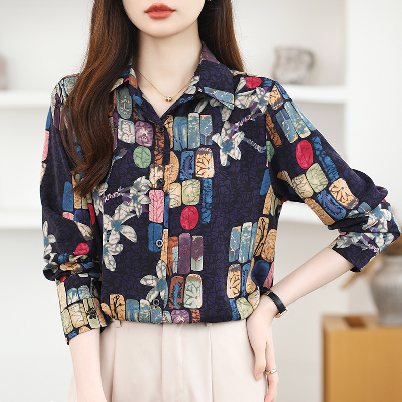Kemeja Wanita Lengan Panjang Korea Kasual Fashion Atasan Longgar Sifon Biru Tua