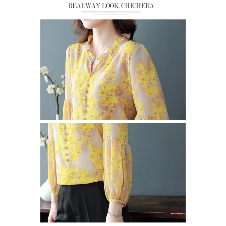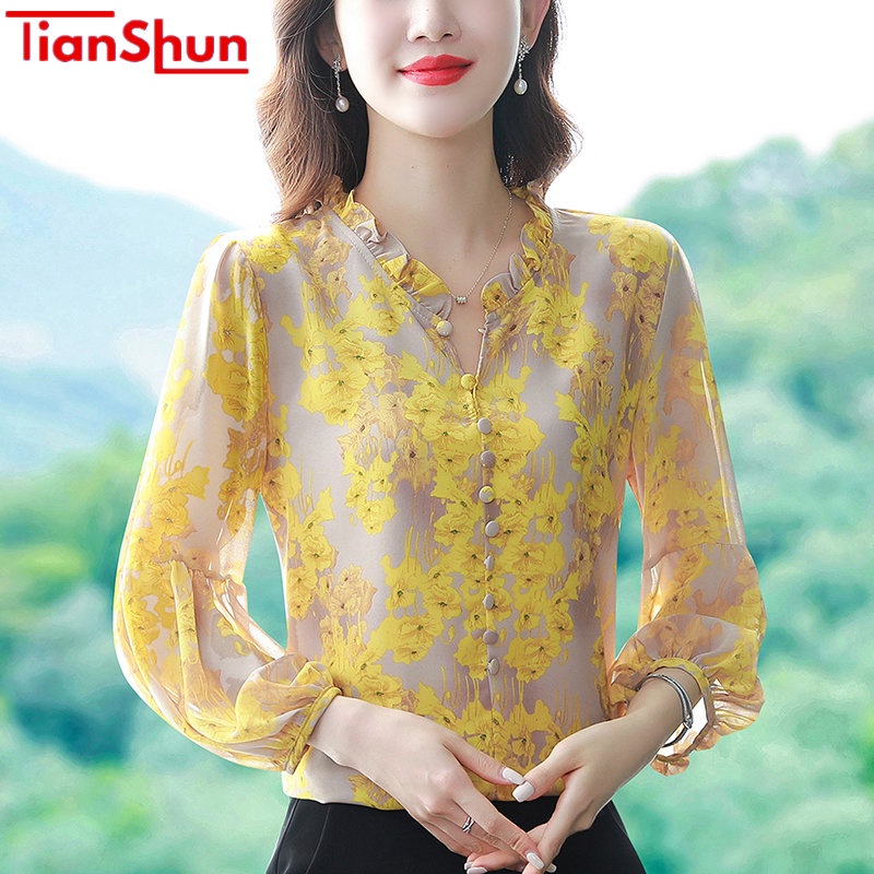 TianShun Temperament 3/4 Sleeve Women's Top Korean Fashion Chiffon Print Work OL Daily Casual Shirt