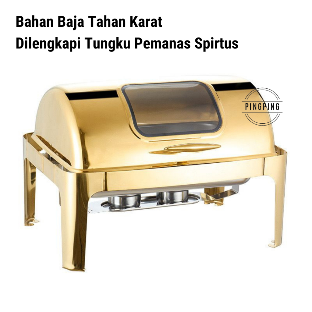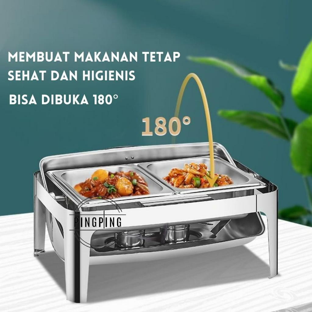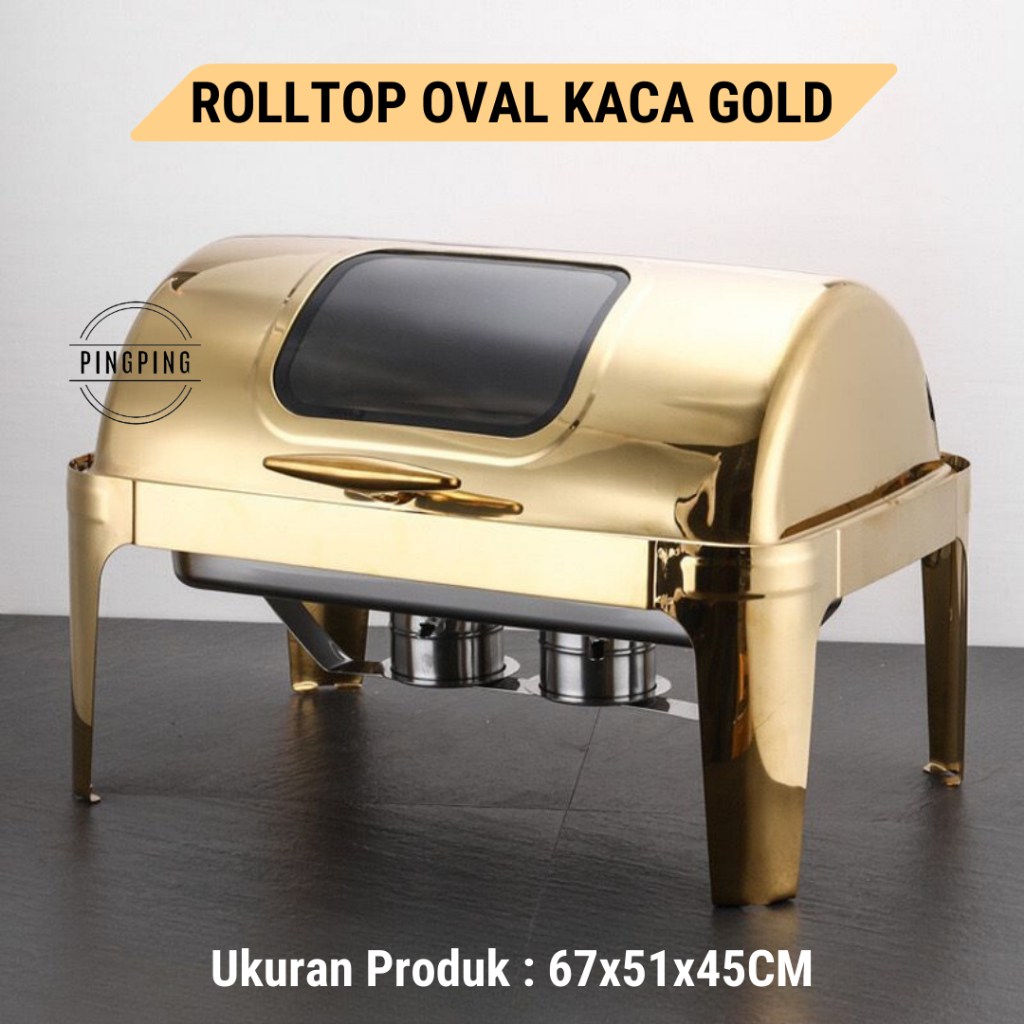 PROMO Chafing Dish/RollTop Segi Oval Kaca Stainlees Steel Kualitas Tinggi 9L