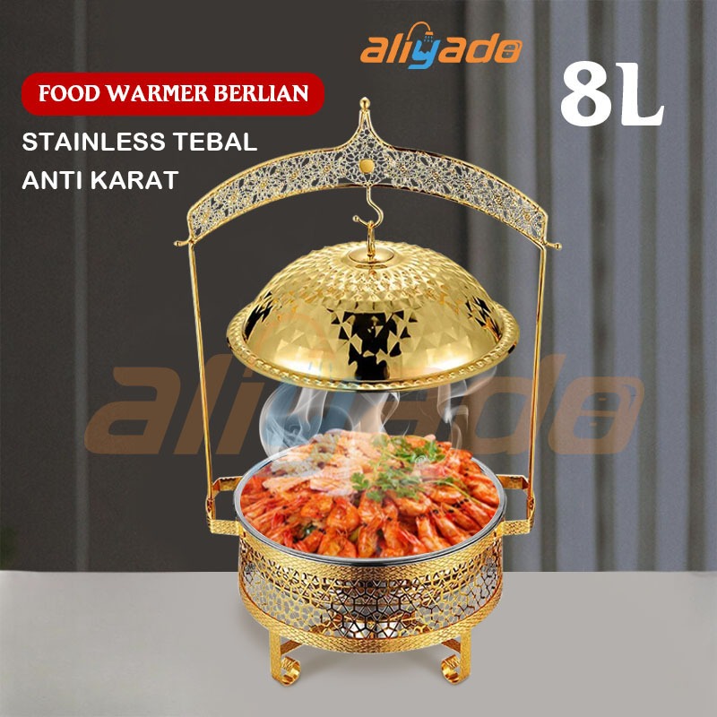 Food Warmer 8L Kenduri Panci Prasmanan Bulat GOLD Chafing Dish Prasmanan bukan rolltop roll top Round Chafing Dish bagus