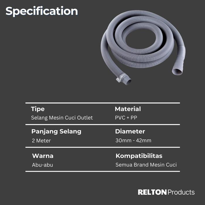RELTON Selang Pembuangan Air Mesin Cuci Outlet Washing Machine Hose 2 Meter 3 Meter 5 Meter 10 Meter - 2 Meter