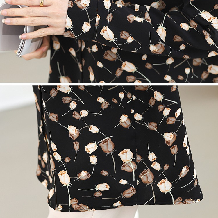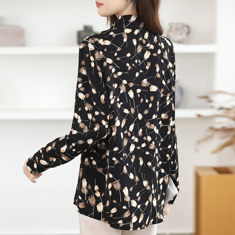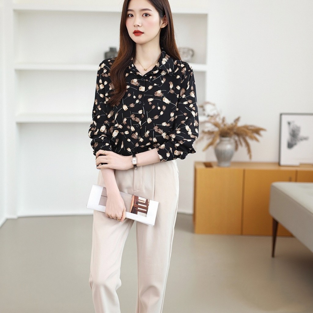 Fashion Korean Kemeja Wanita Sifon Lengan Panjang Longgar Hitam