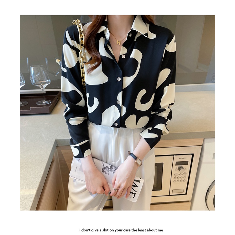 Tianshun Mencetak Kemeja Kasual is Motif Sifon Lengan Panjang Wanita