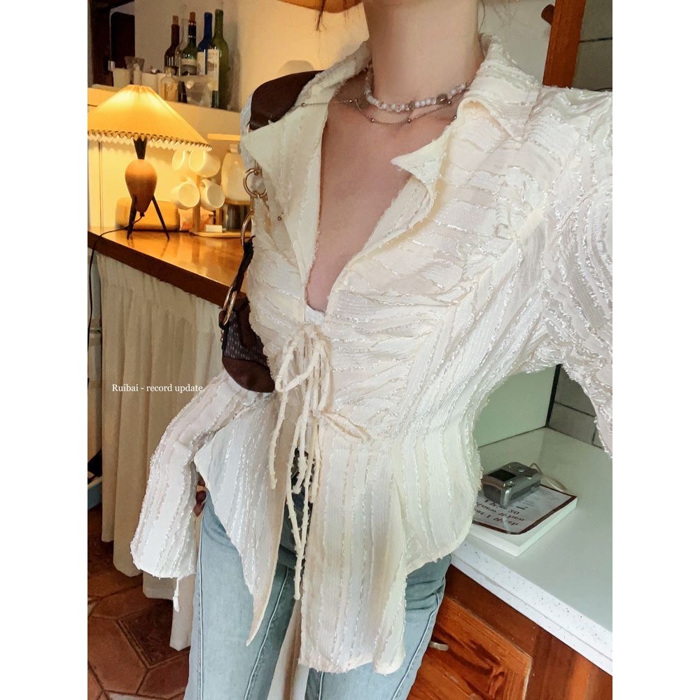 Kemeja Sifon Dasi Krem cewek Seksi el Slim Fit Lengan Panjang
