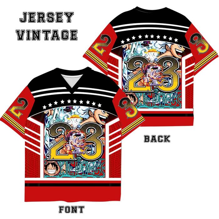 [PROMO] BAJU JERSEY ANAK BAHAN DRYFIT ONE PIECE LUFFY VINTAGE ANAK UNISEX COWOKCEWEK USIA 2 10 TAHUN OVERSIZELUFY MERAH M