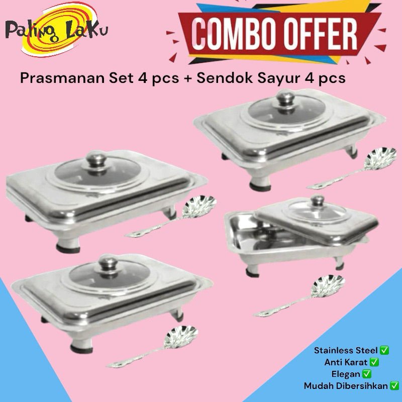 Prasmanan Combo Hemat Set 4 pcs fast food kaca + 4 pcs Sendok Sayur