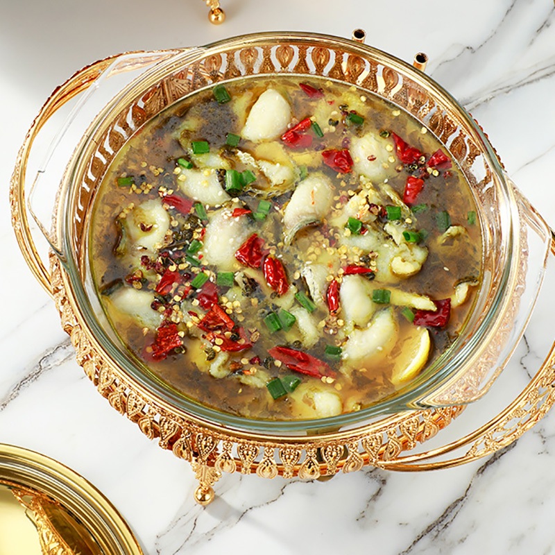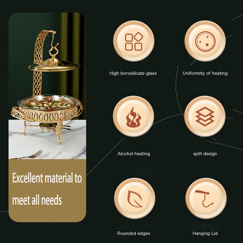 ⭐Garansi⭐2L/3L Food Warmer Wadah Kaca Tebal Gold Food Warmer Wadah Baki Kaca Tebal Gold Food Warmer Perasmanan Pernikaha