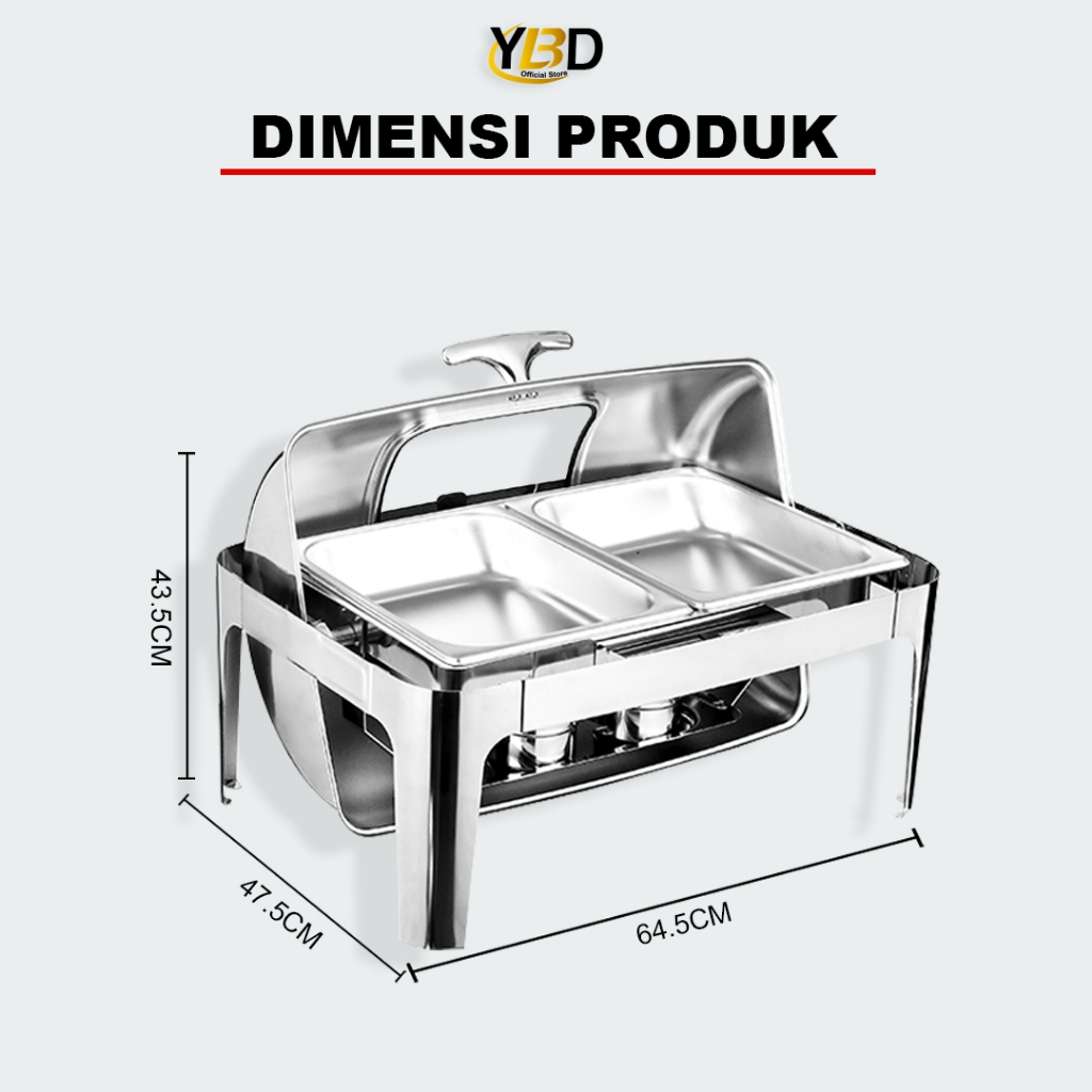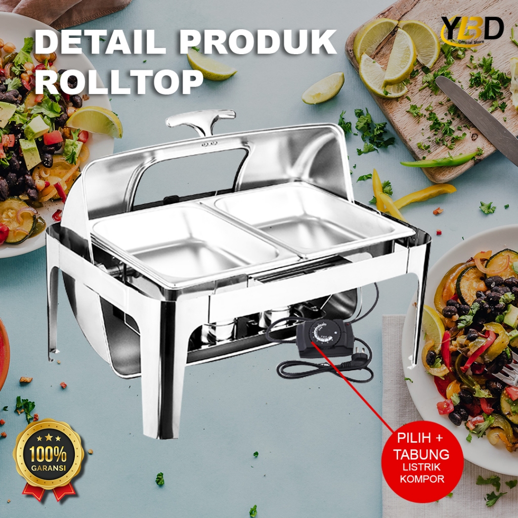 Roll top prasmanan 9L | Roll Top Chafing Dish Stainless Steel Premium Hotel/Apartement | Rolltop persegi kotak kaca Pras