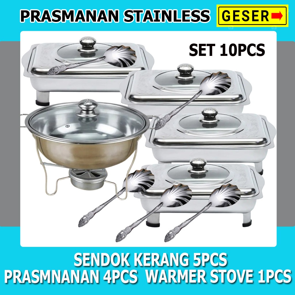Paket Prasmanan Stainless Dan Warmer Stove Plus Sendok Paket Prasmanan Pesta Set 10pcs
