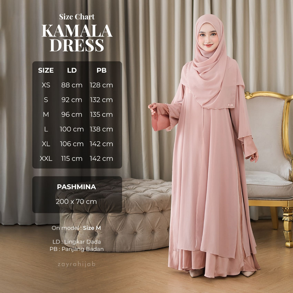 ZAYRA HIJAB | KAMALA DRESS | Gamis Set Pashmina Wanita Ukhti Syar'i Simpel Payet Babydoll Satin Kondangan Lebaran Jumbo Mewah Elegan Premium 2025