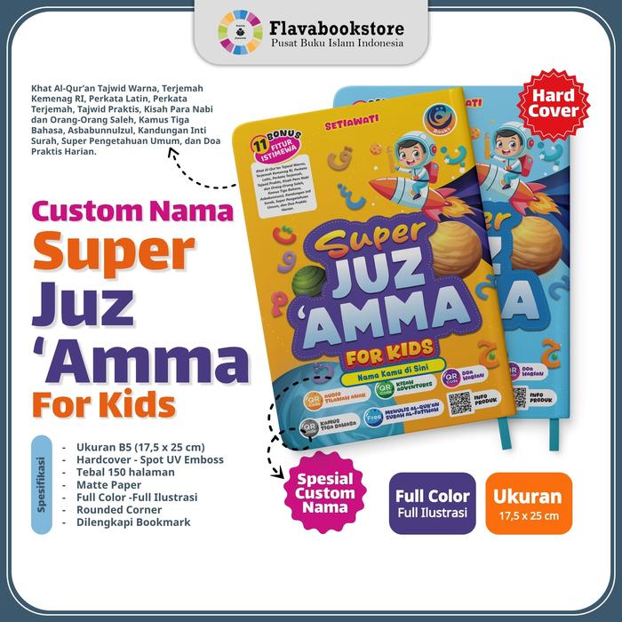 PROMO MURAH} BUKU SUPER JUZ AMMA FOR KIDS CUSTOM NAMA JUZ AMMA ANAK SUPERLENGKAP RUMAH FLAVA INDONESIA COVER BIRU CUSTOM