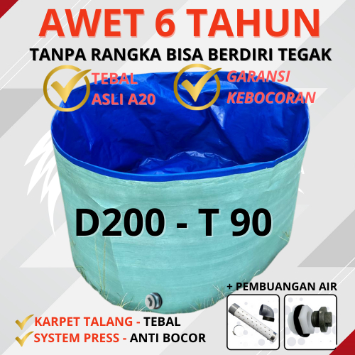 Kolam Terpal Bulat Diameter 200 CM Tinggi 90 CM / D2 T90 Bisa berdiri tanpa rangka Untuk Budidaya Ikan Lele, Gurame, Nil