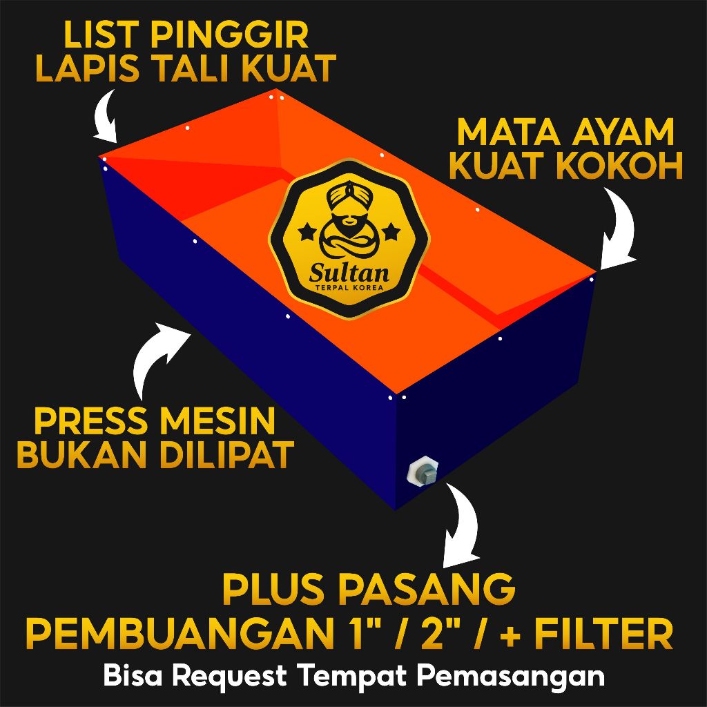 Kolam Terpal 500x300x100 / 300x500x100 / 5x3x1 / 3x5x1 Tebal A20 / A15 / A12 / A8 / A5 / A3 Kolam Terpal Kotak Impor Kor