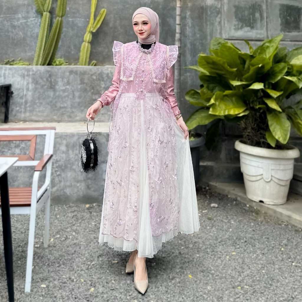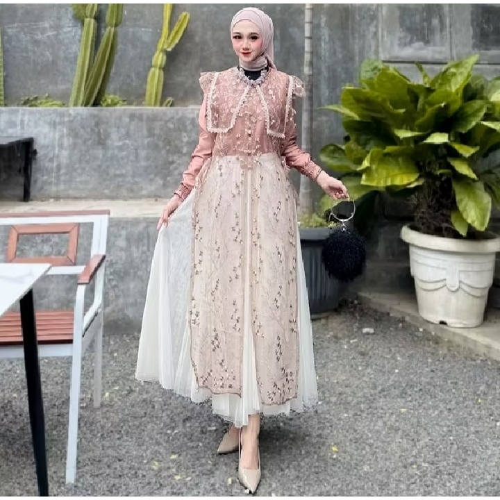 Batik Rais-Sienna 3 In 1 Inner Outer Rok Tutu Dress Muslim Wanita Wisuda Kondangan Bridesmaid Modern