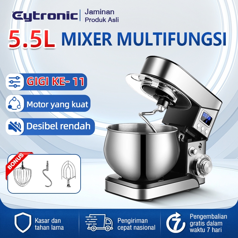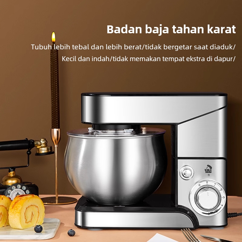 [READY STOCK]Mixer multifungsi berkapasitas besar 5L, pengaturan 6 kecepatan, motor bertenaga 1200W, baja tahan karat fo