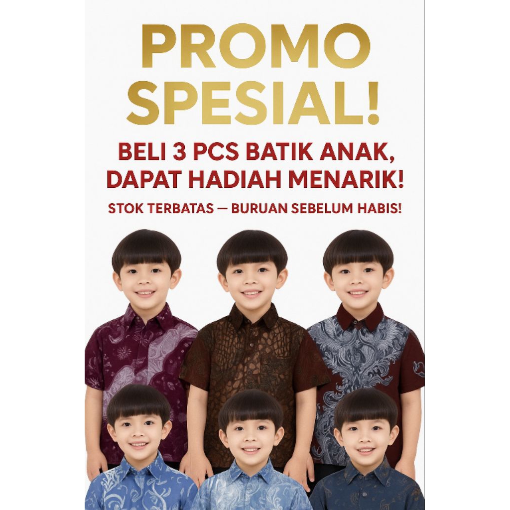 kemeja anak Promo Baju Batik Anak Laki Laki Paket Hemat Beli 3 Pcs Cuma Rp 75000