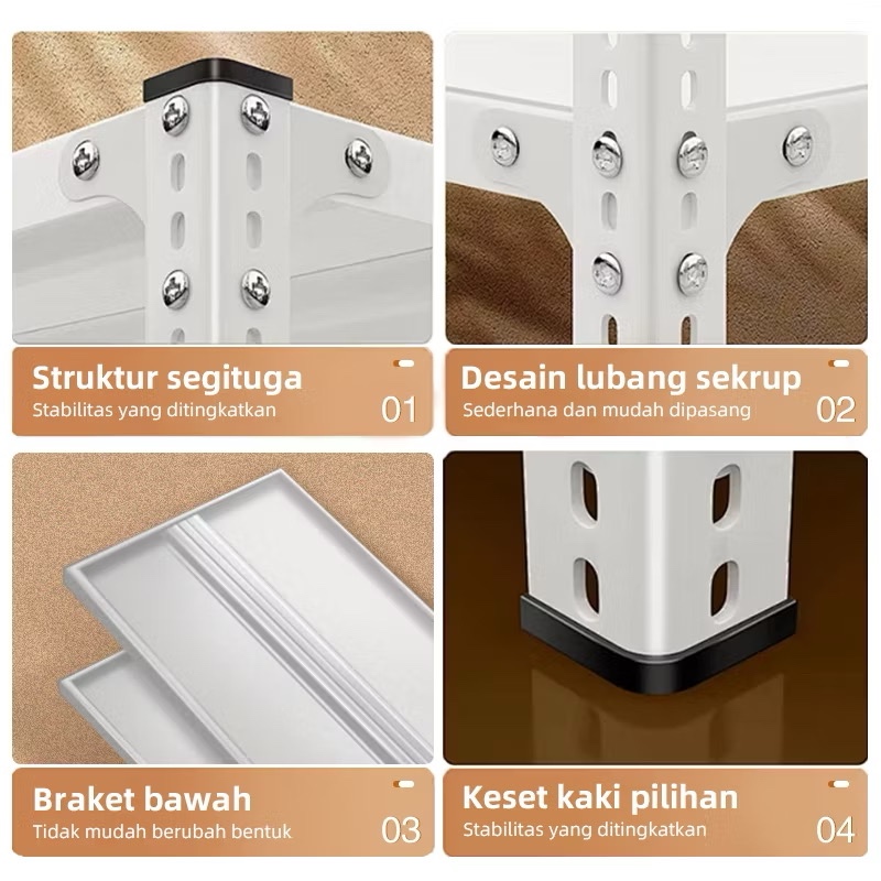 ES Rak Besi Siku Serbaguna Tahan Karat - Rak Gudang & Penyimpanan Kuat Anti Karat, Adjustable, untuk Dapur/Perabotan/Display