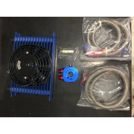 OIL COOLER 15 ROW KOMPLETE SET SELANG DAN ADAPTOR DAN KIPAS