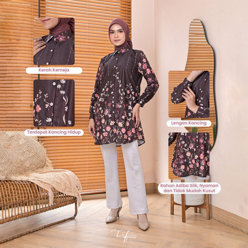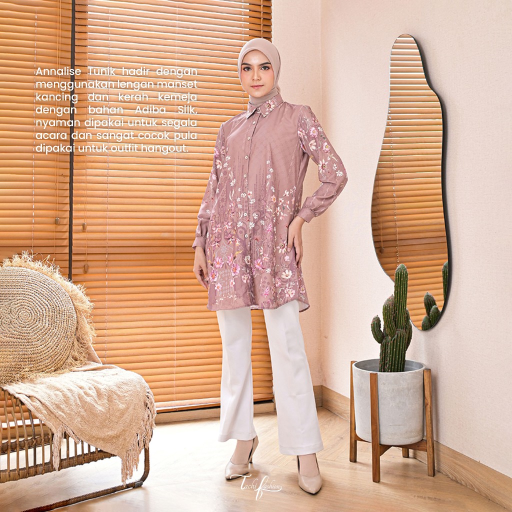 Tachi Fashion Annalise Tunik Mewah Kemeja Formal Casual Motif Kekinian